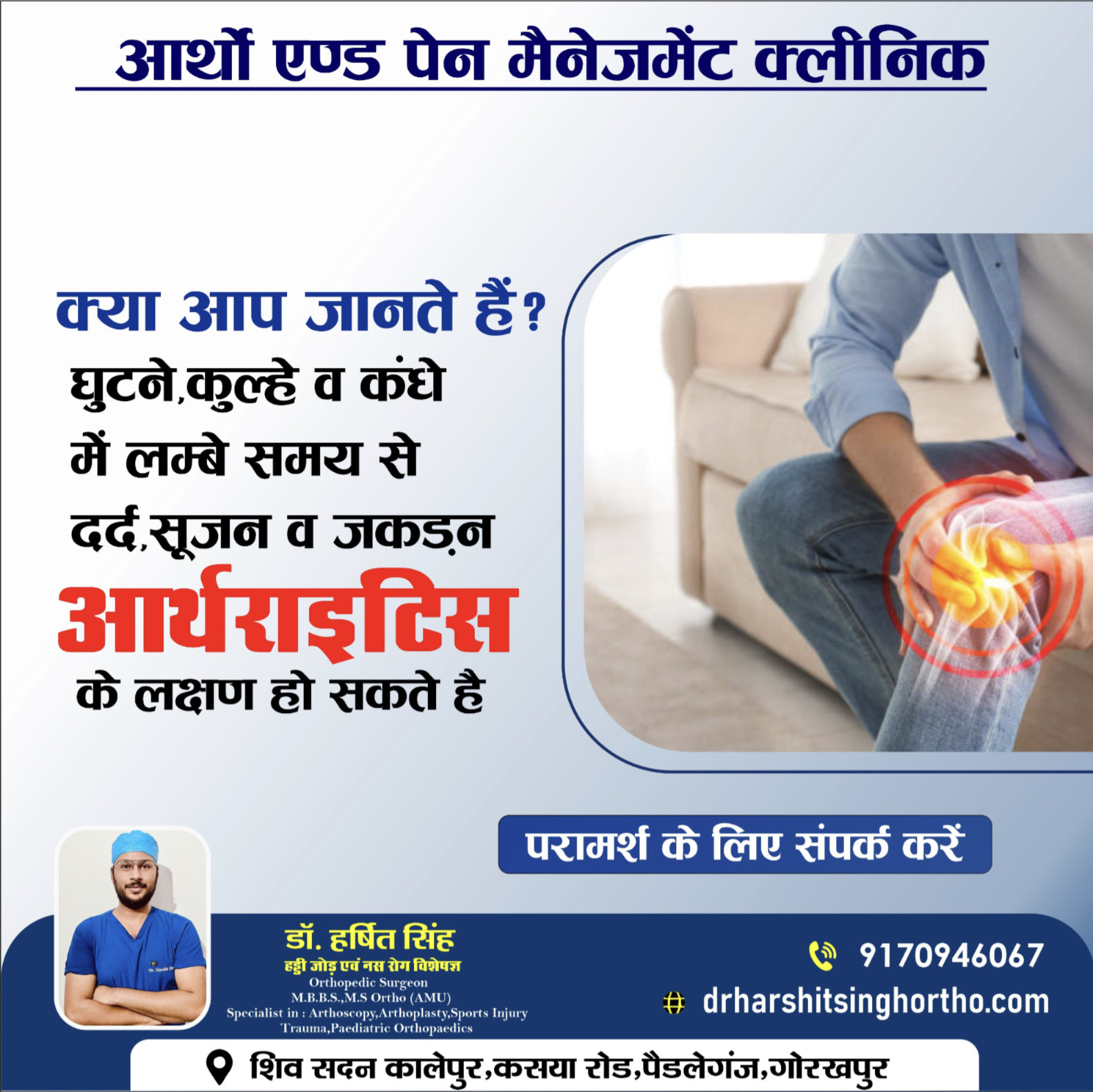 He is also visiting consultant in the Department of Orthopaedic Surgery at Rajendra Hospital, Gorakhpur.(U.P).